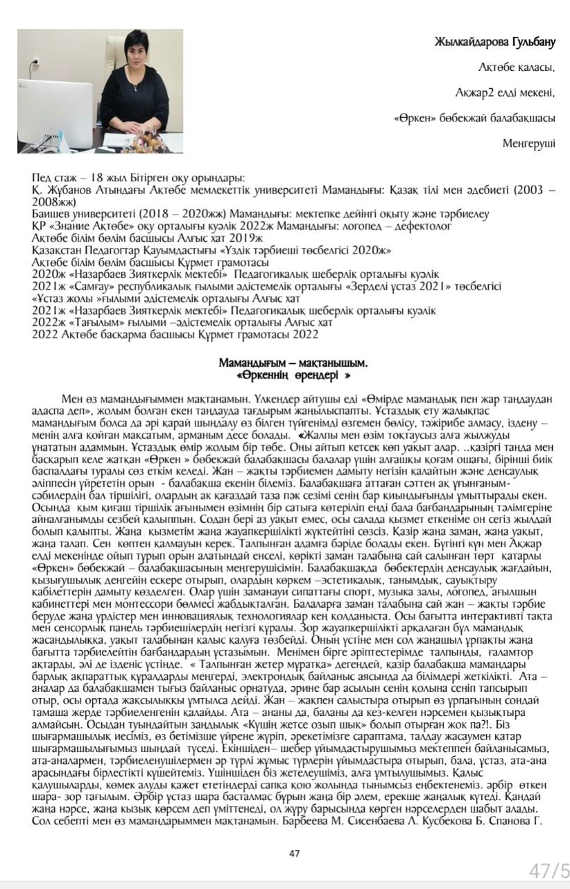 «Педагогтардың шыңдалу» Республикалық Ғылыми — Әдістемелік танымдық журналы «Өркеннің өрендері» мақаласы жарық көрді №5 ( ақпан )2023ж